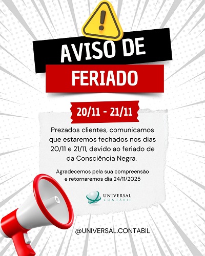 Aviso feriado 20/11 e 21/11 - Estaremos Fechados